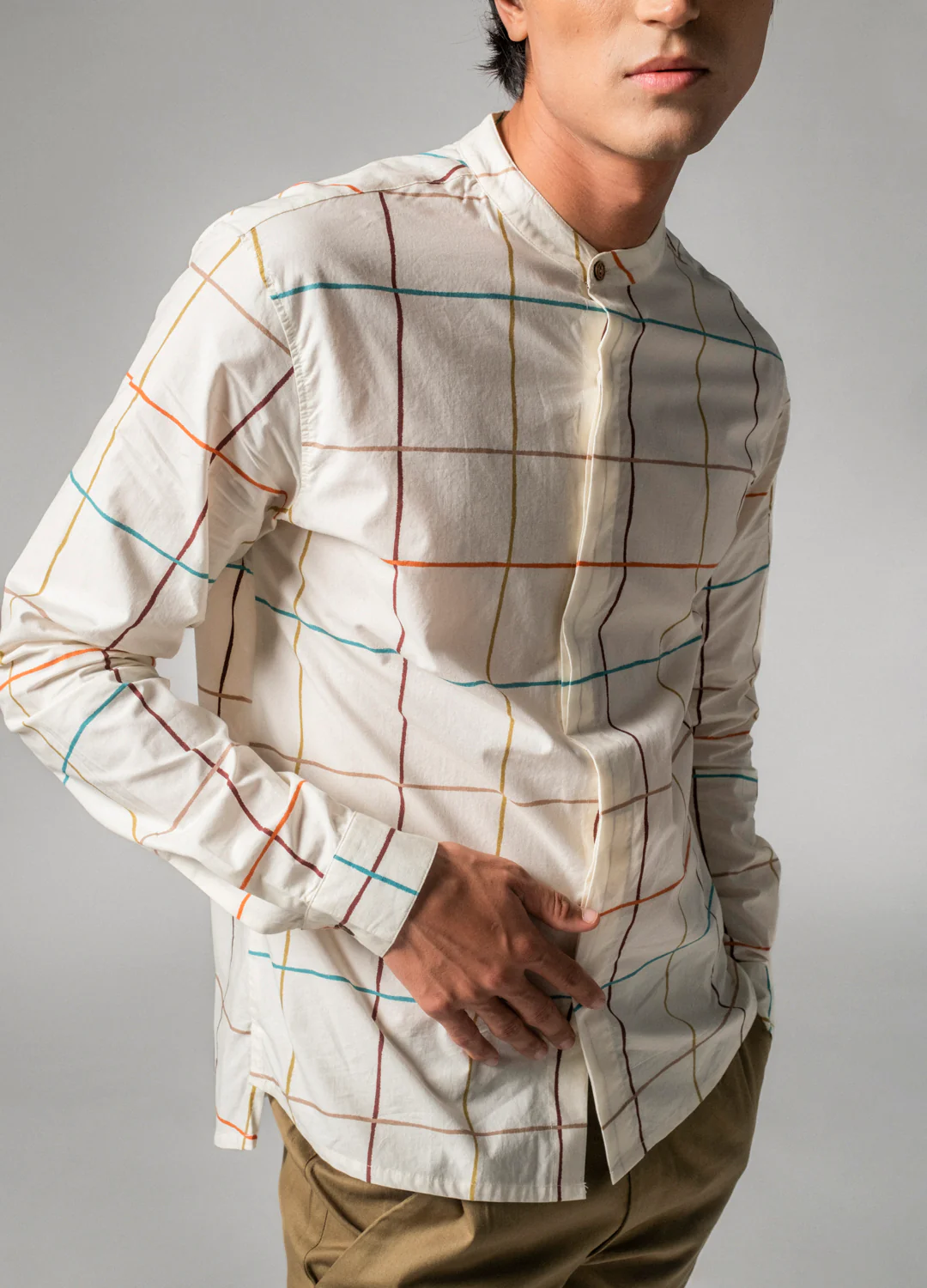Plaid Mandarin Shirt