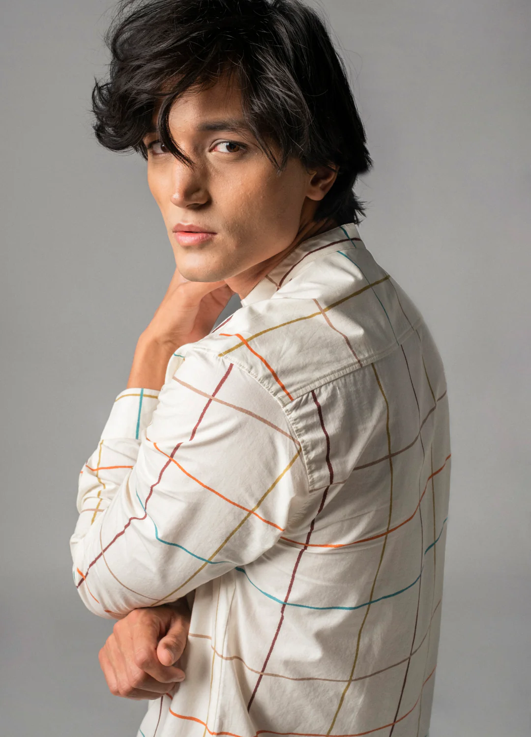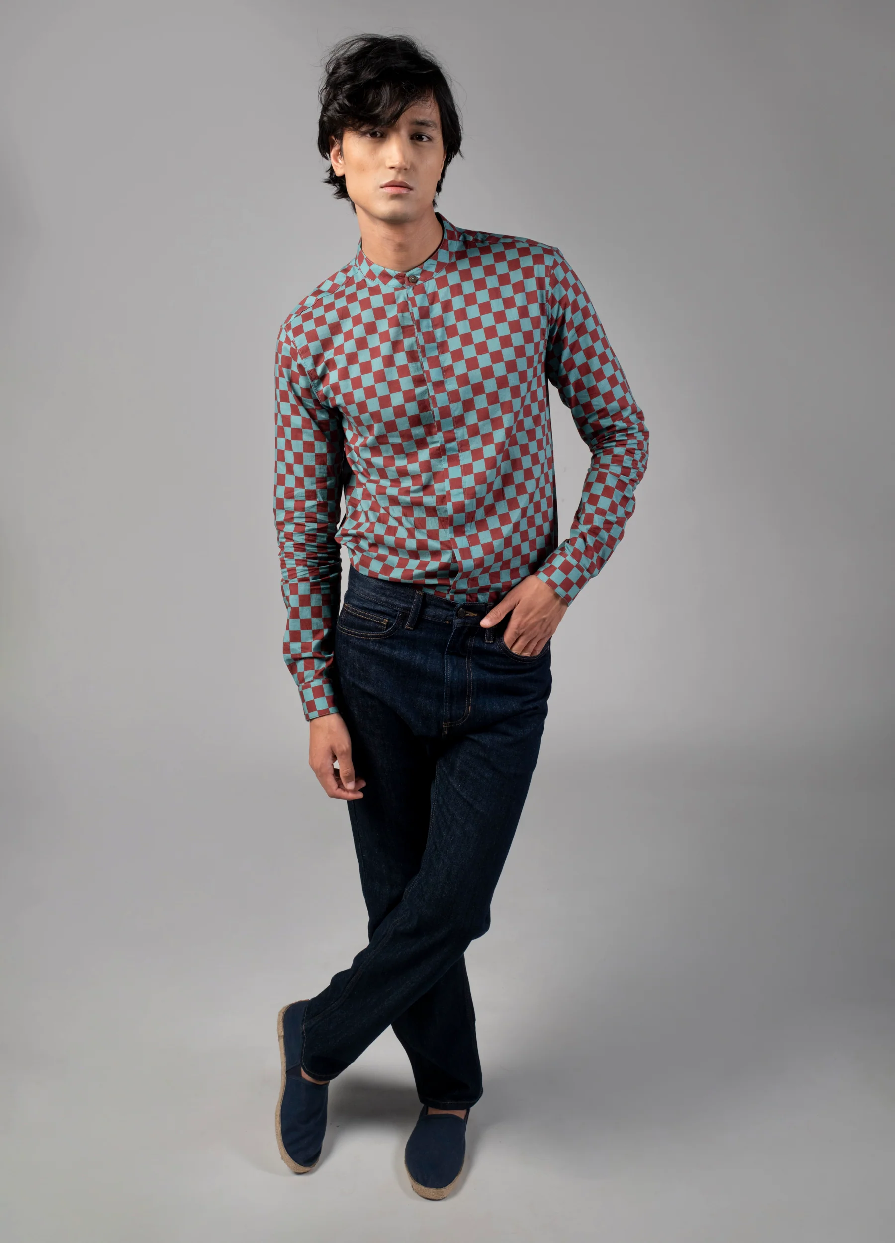 Syrah Checkers Mandarin Shirt